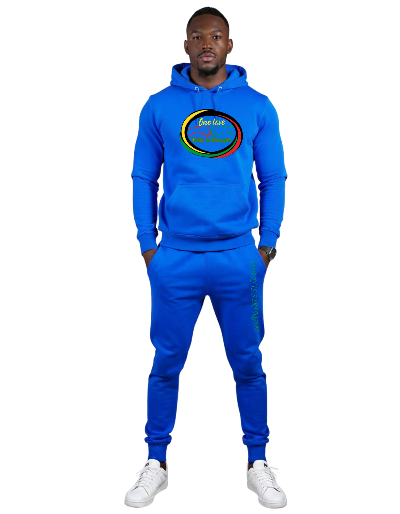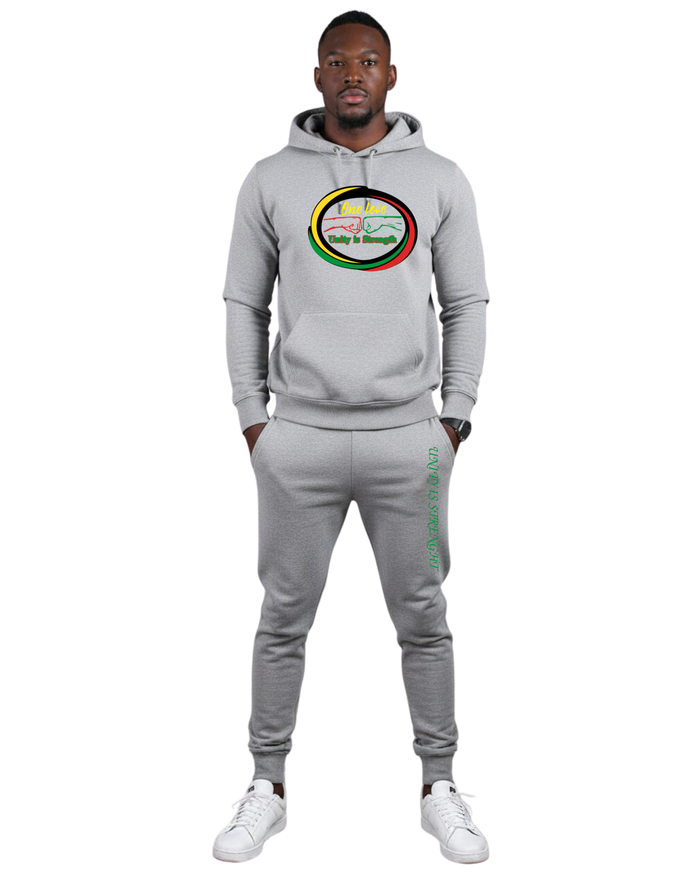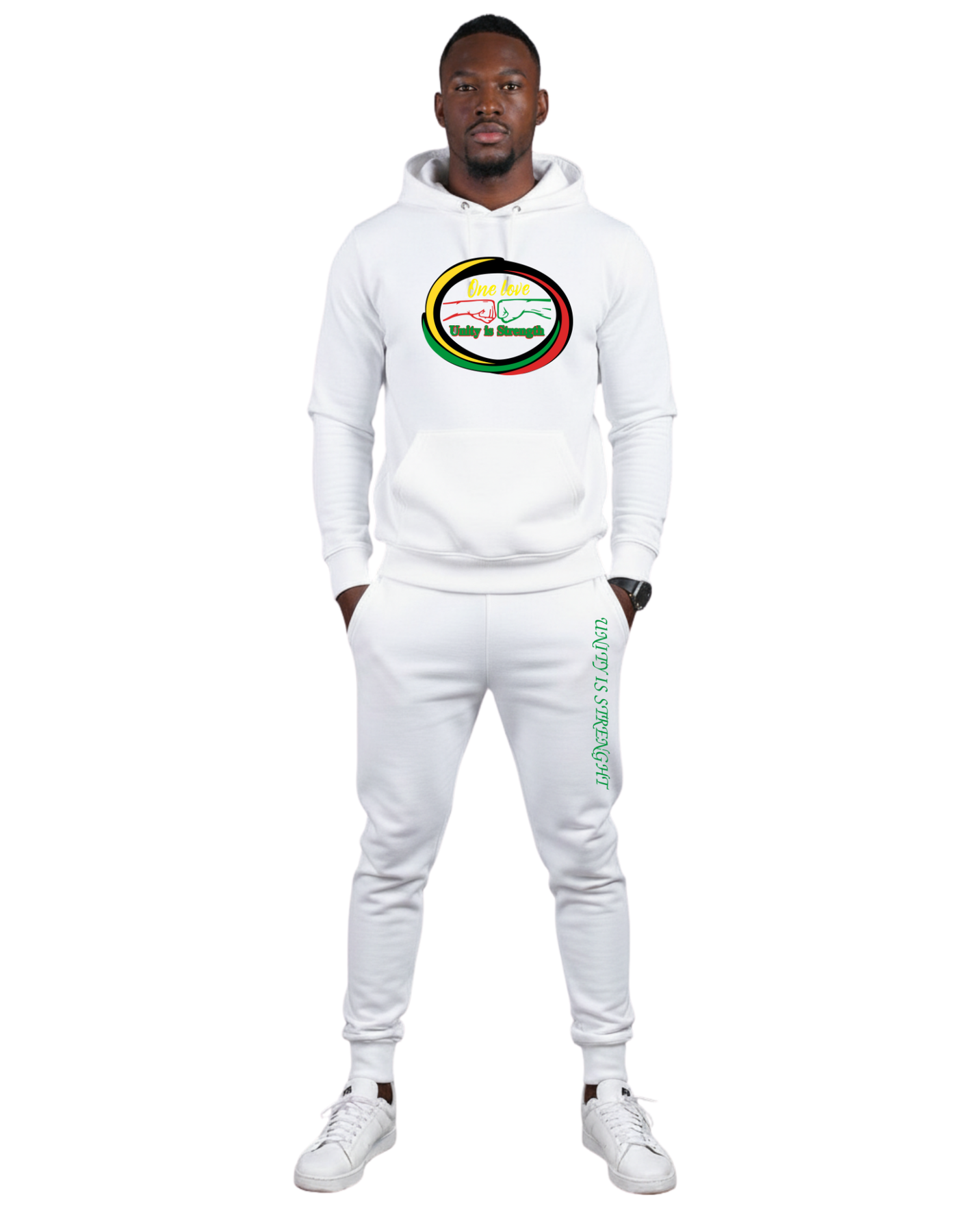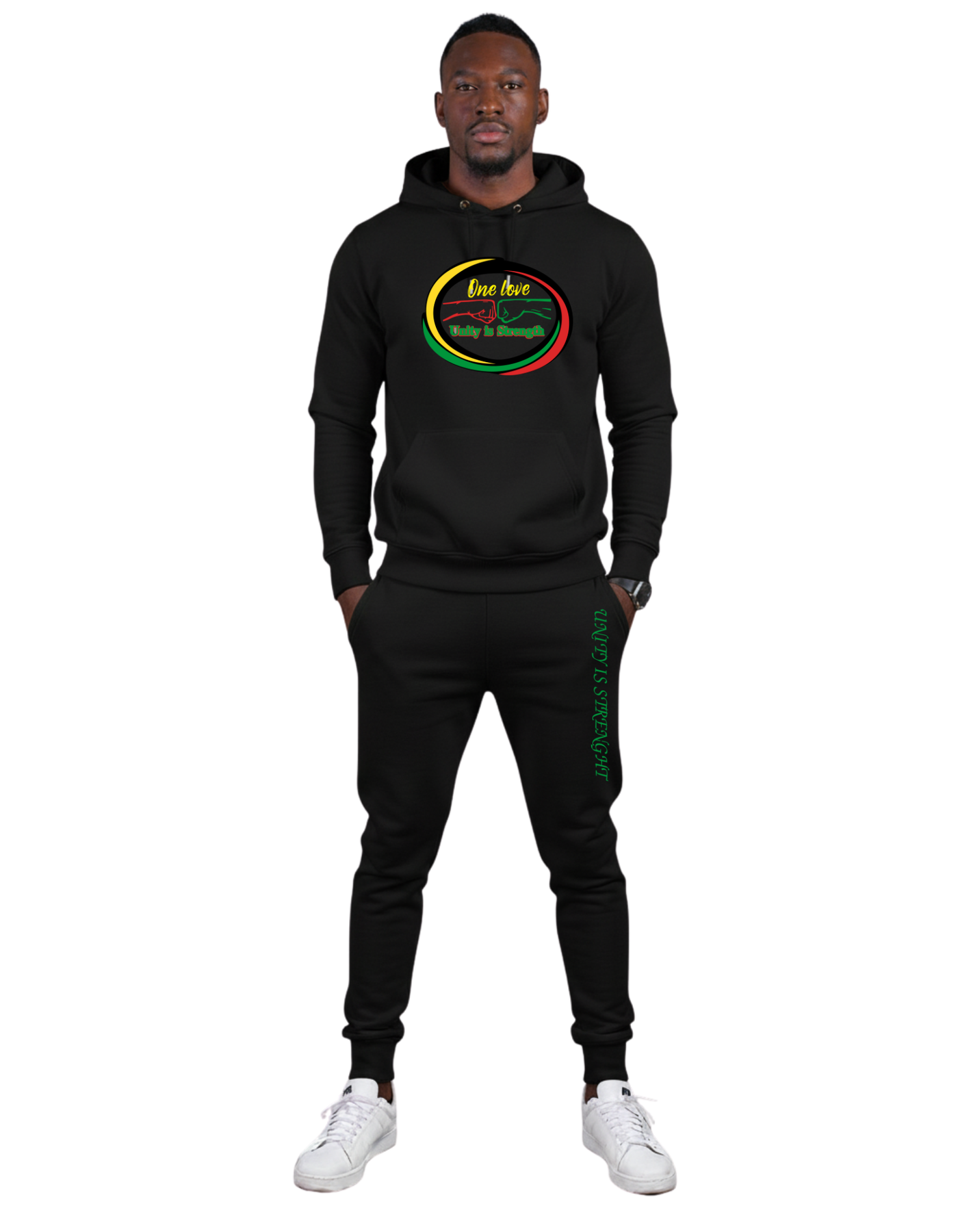 Show your style, culture, and message of unity with the One Love – Unity Is Strength Tracksuit Set.